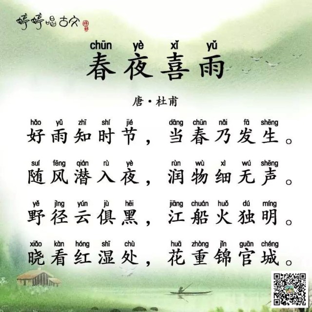 我们今天学习他的另一篇佳作——《春夜喜雨》,看看杜甫怎么再次用细腻的笔触来描写生活。