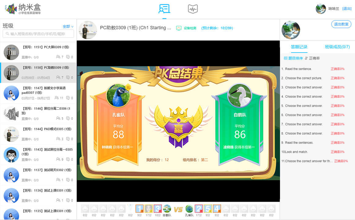 上课的学生分为两个小组PK答题,每节不低于20次的高频提问与结果激励规则,充分调动孩子们的积极性,学生注意力更集中,课堂效果自然好。