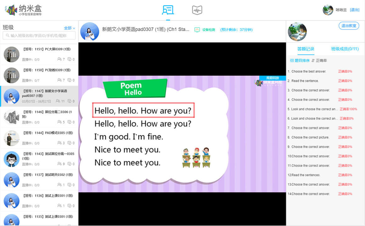 机构根据可选大屏或pad课堂模式,学生登录双师课堂版APP上课答题,接受纳米盒网校线上授课。机构辅导老师提供线下答疑、辅导和讲解,课后自动生成学习报告给家长反馈成果。纳米盒网校独创的PK互动竞答模式给课堂带来充足活力,机构轻松教,服务更高效。